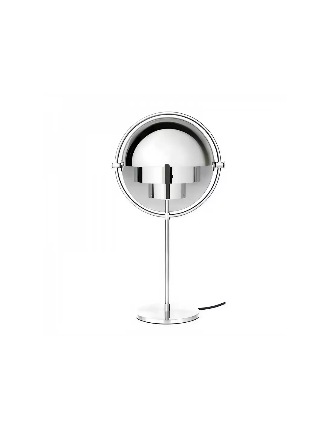 Diese Tischleuchte zeichnet sich durch ein markantes Design aus, das aus zwei inneren zylindrischen Schirmen und einem kugelförmigen Außenschirm besteht, der in zwei Viertel geteilt ist. Der bewegliche Außenschirm ermöglicht eine Ausrichtung des Lichts nach oben, nach unten oder asymmetrisch – ganz nach den jeweiligen Beleuchtungsanforderungen.